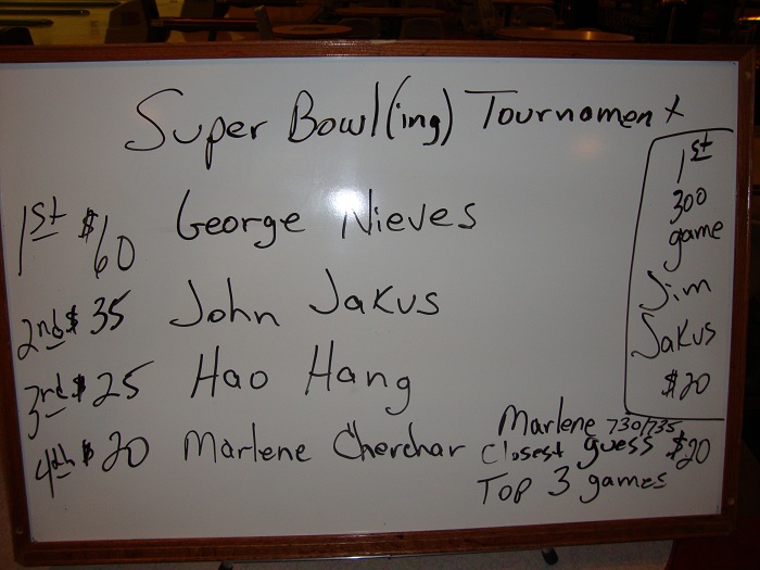 Congratulations again to George Nieves as he is the 2012 Super Bowl(ing) Champion.